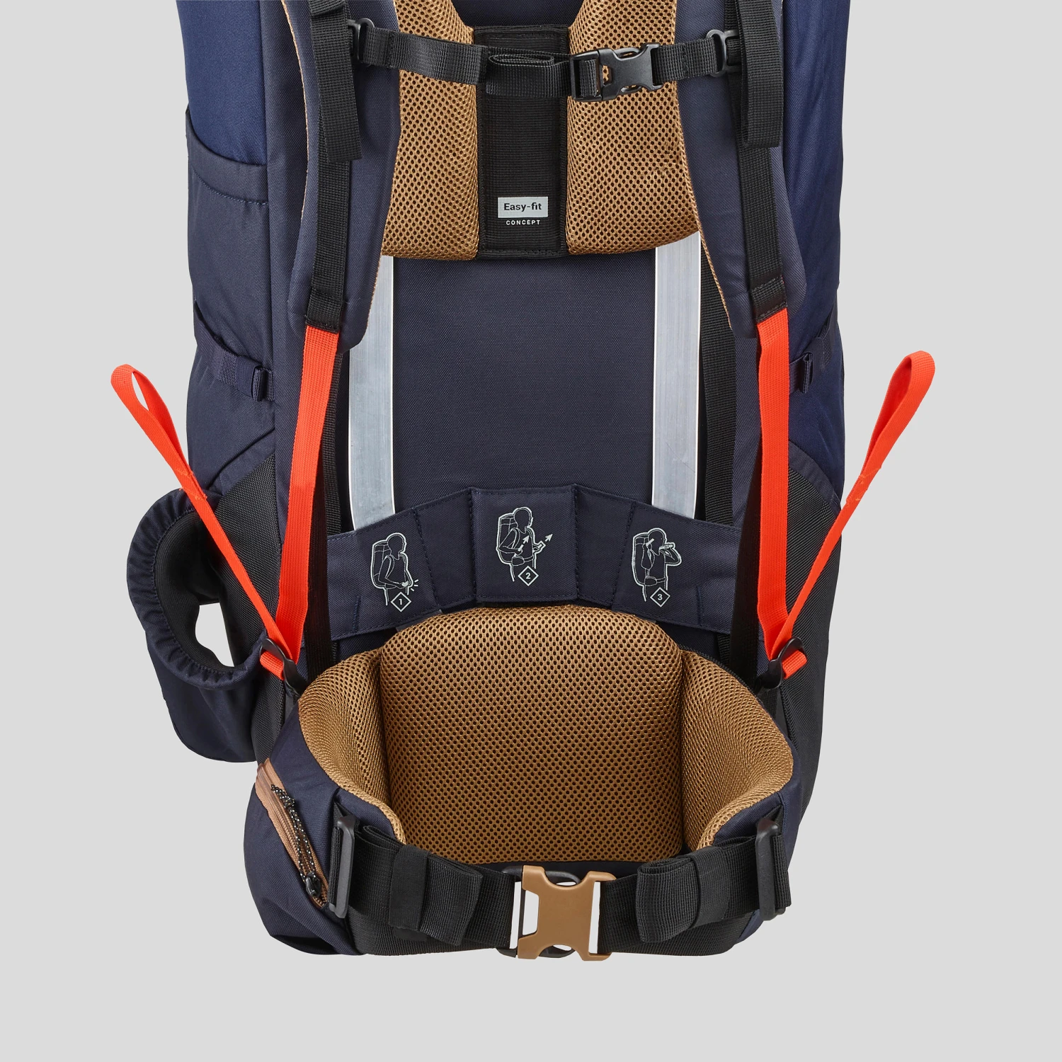 Our patented Easyfit system allows you to adjust the back height and strap tension simultaneously by pulling on one single strap (on each side).