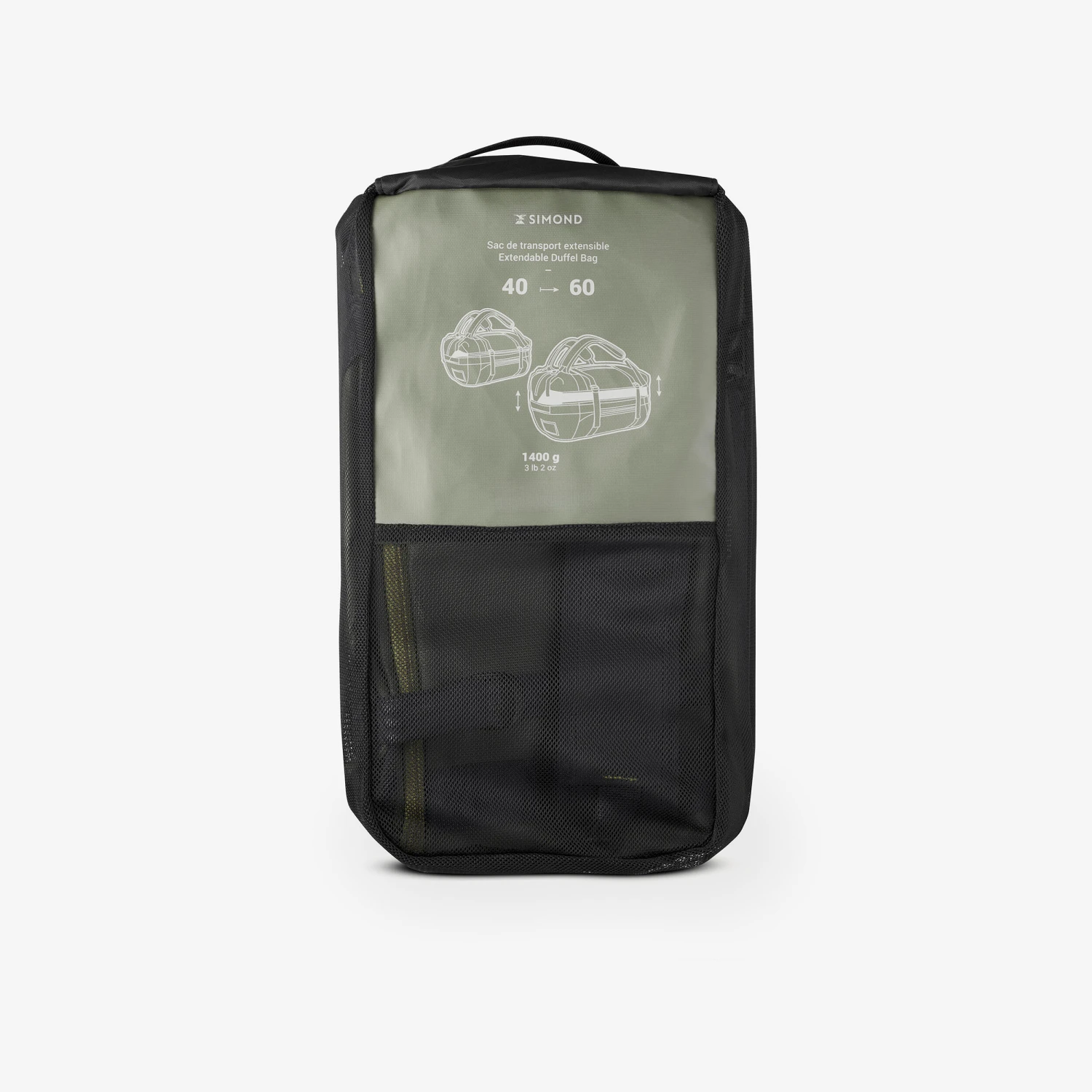 This duffle bag comes with our “Extend” system so you can vary the bag’s volume. It’s a system of straps that free up extra space when loosened. Conversely, it also compresses the bag to reduce it to its minimum volume (40 L for this one).