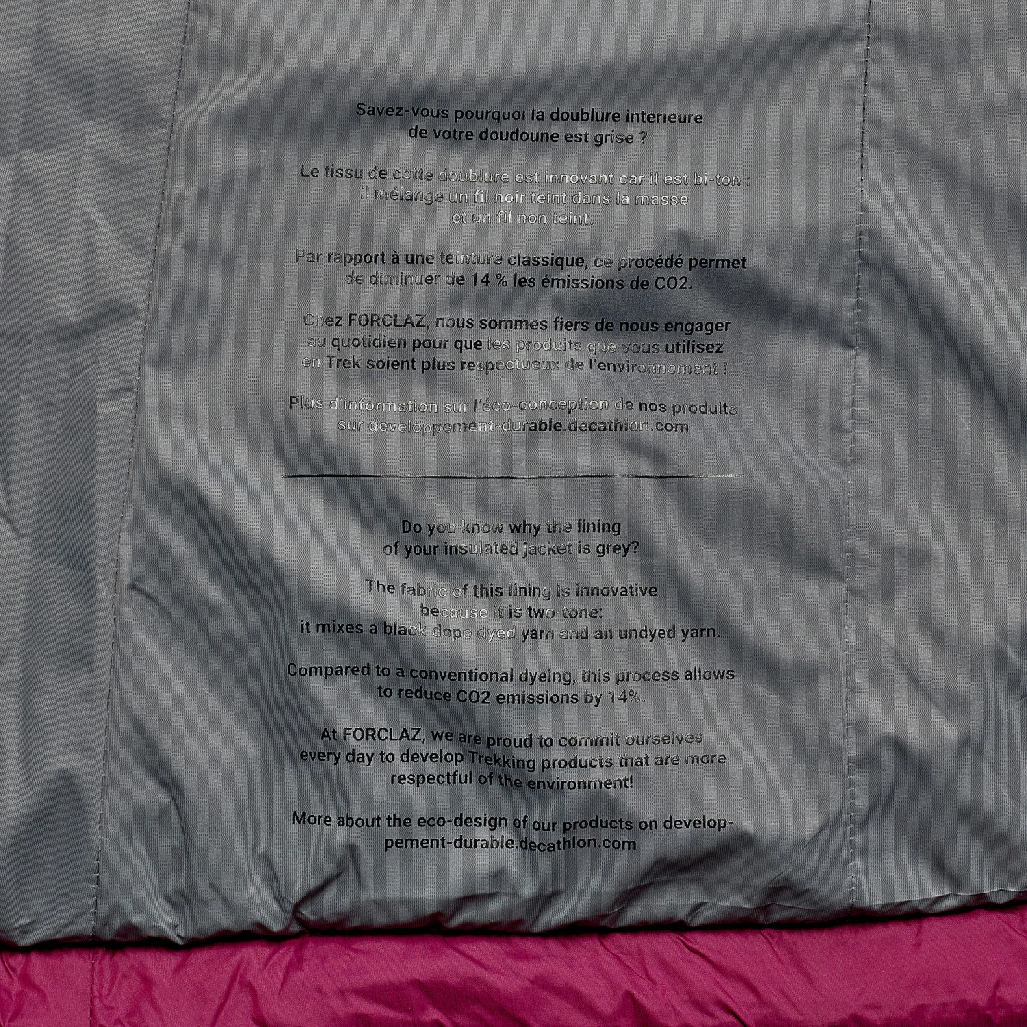 Do you know why the inner lining of your padded jacket is grey?